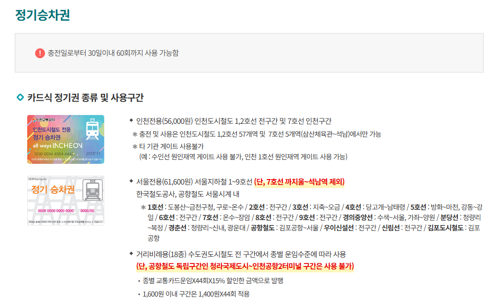 ● 사용 가능 노선: 인천 1·2호선, 서울 7호선 인천구간 포함