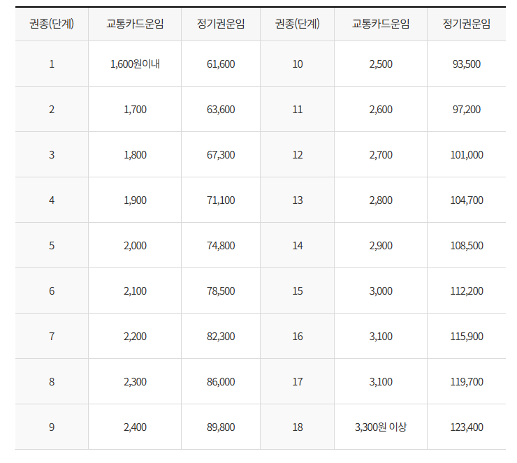 정기권은 출퇴근족에게 매우 유리한 요금제입니다.