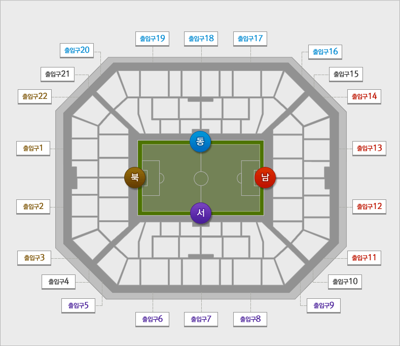 - 북쪽 (N석): 원정팀 응원석 또는 행사에 따라 무대 후면