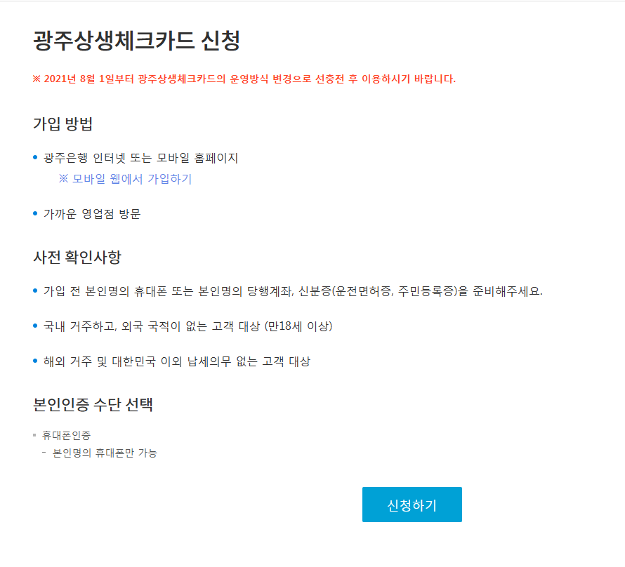 광주 상생카드는 광주은행에서만 발급 가능합니다.