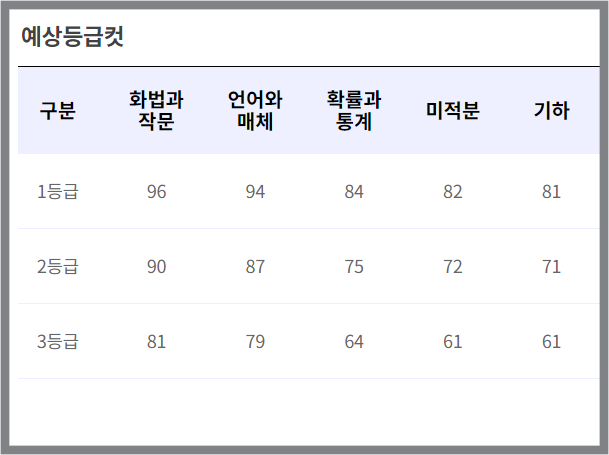 ✅1등급 : 화법과 작문 96점, 언어와 매체 94점, 확률과 통계 84점, 미적분 82점, 기하 81점