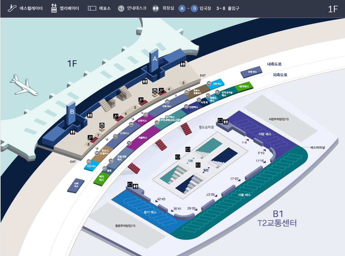 ● 도착층 8A : 매시 50분 출발 / 오전 7시 50분부터 오후 10시 50분까지 운행