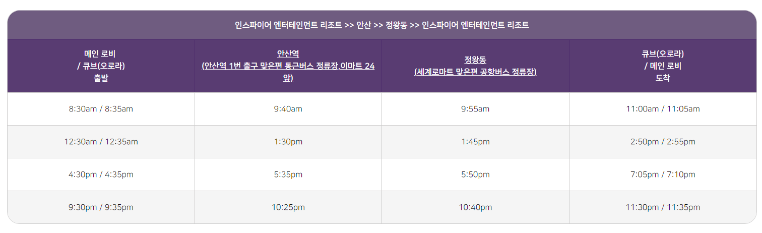 ● 안산역 이마트 24 안산역점 : 오전 9시 40분 첫 차 출발 / 일 4회 운행