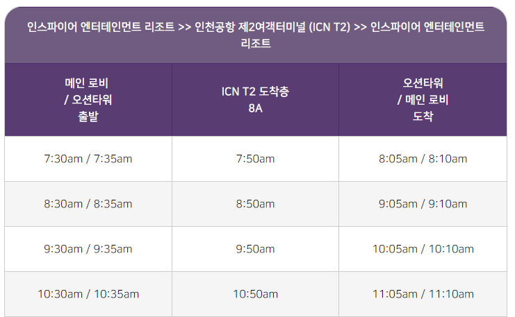🟩인스파이어 리조트 >> 인천공항 2 터미널