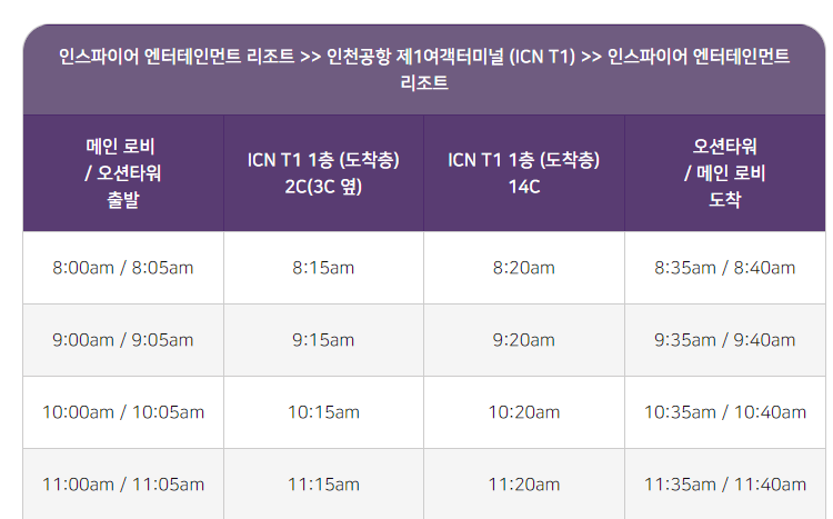 📌인스파이어 아레나에서 무료로 제공하는 왕복 무료 셔틀 서비스는 인천국제공항에서 출발하는 셔틀버스입니다.