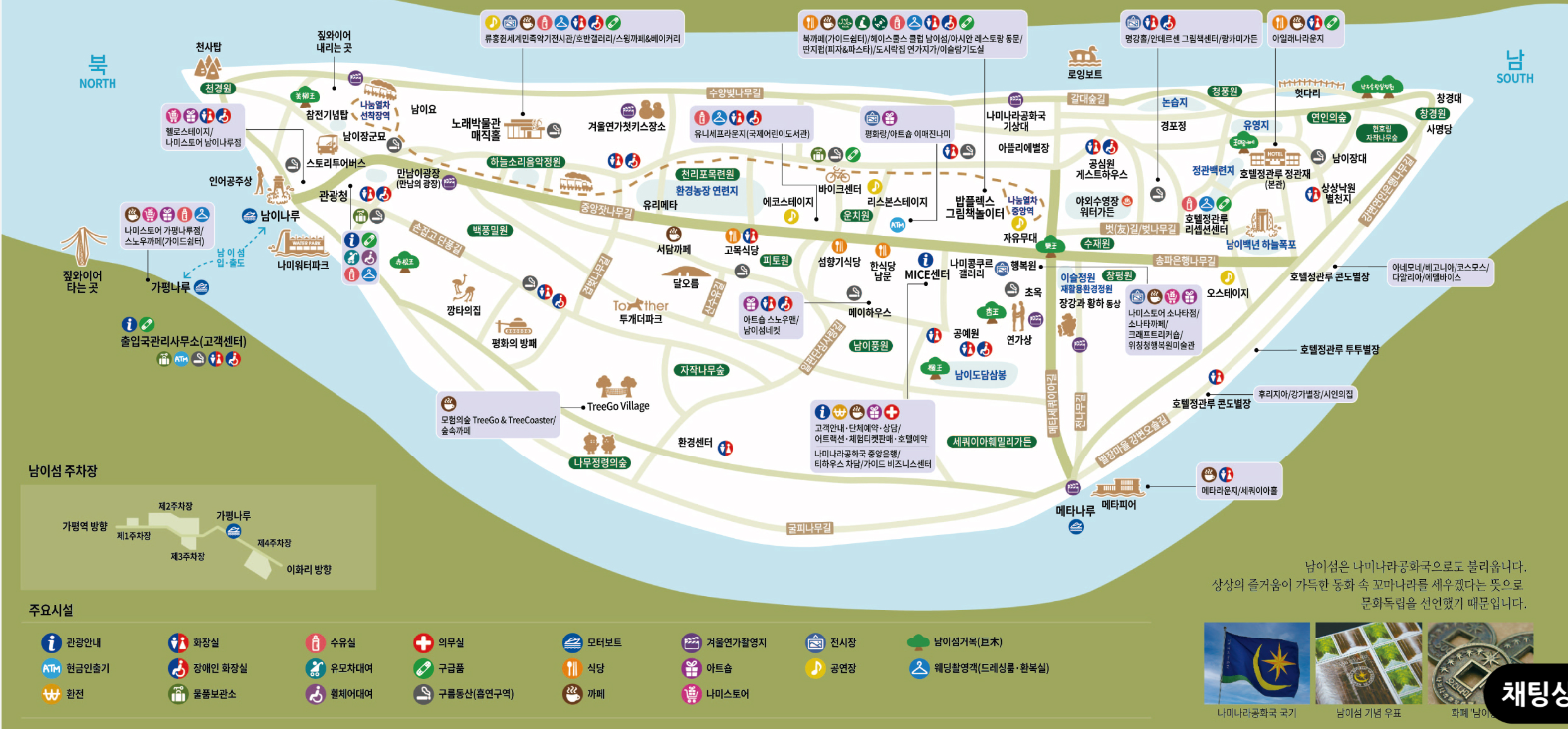 ● 주차 정보: 주말 기준 11시 이전 도착 시 남이섬 공영 주차장 이용 가능. 주차료는 기본 6시간 6,000원이며, 추가 1시간당 1,000원입니다.
