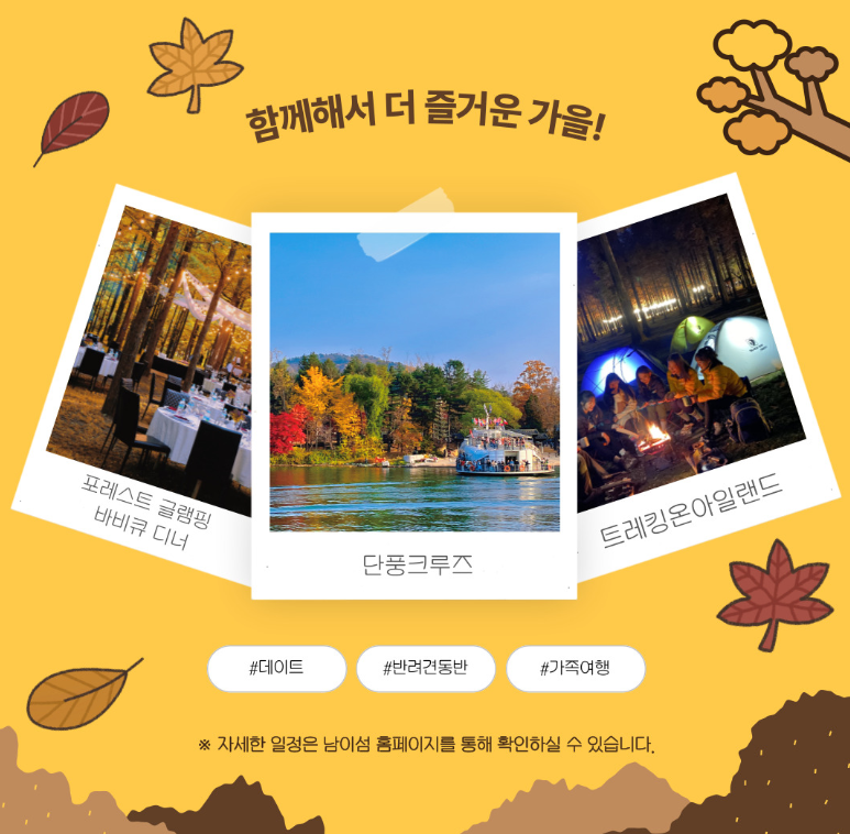 남이섬 단풍 크루즈는 가을 단풍철을 맞아 한정된 일정으로 운항됩니다.