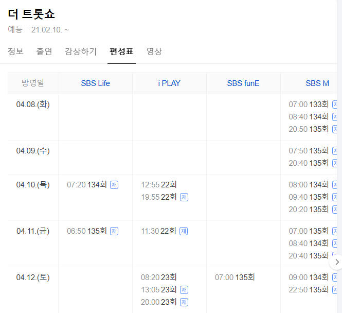 - 재방송은 요일·시간대 다르므로 편성표 확인