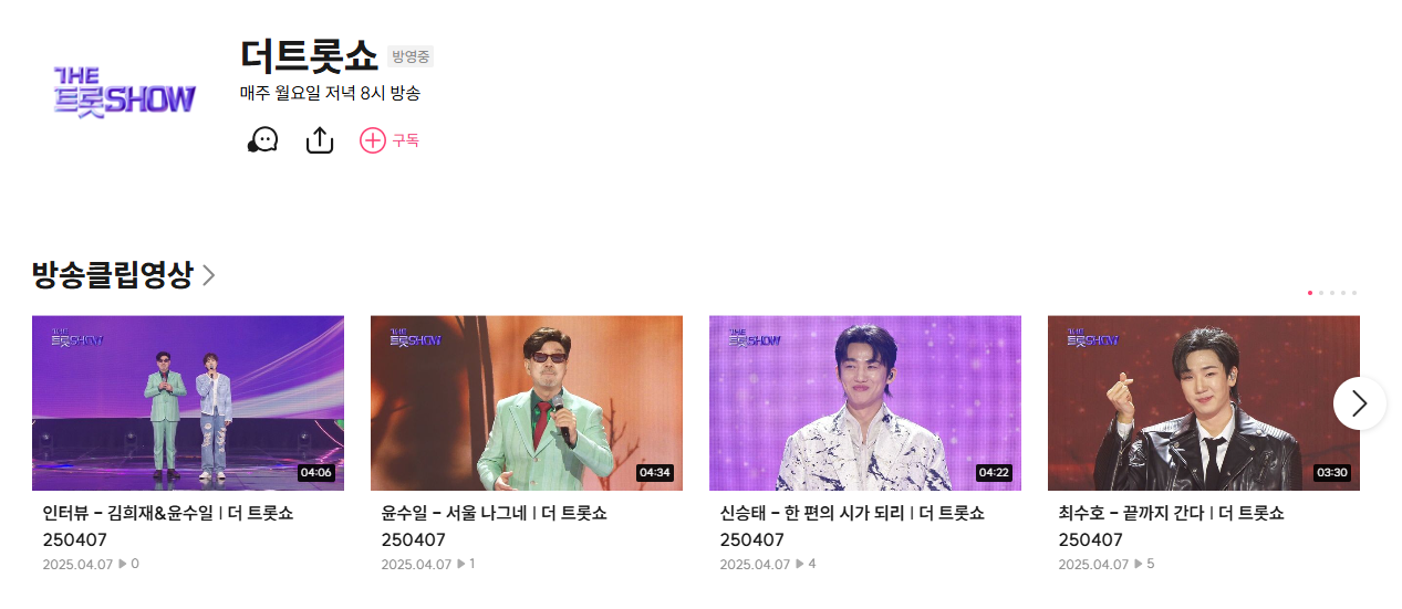 - 더 트롯쇼 방송시간: 매주 월요일 저녁 8시